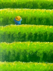 6月のある日、毎日通う自分の畑なのに、とりわけ輝いて見えた時があり、その感動をそのまま一気に描き上げました。